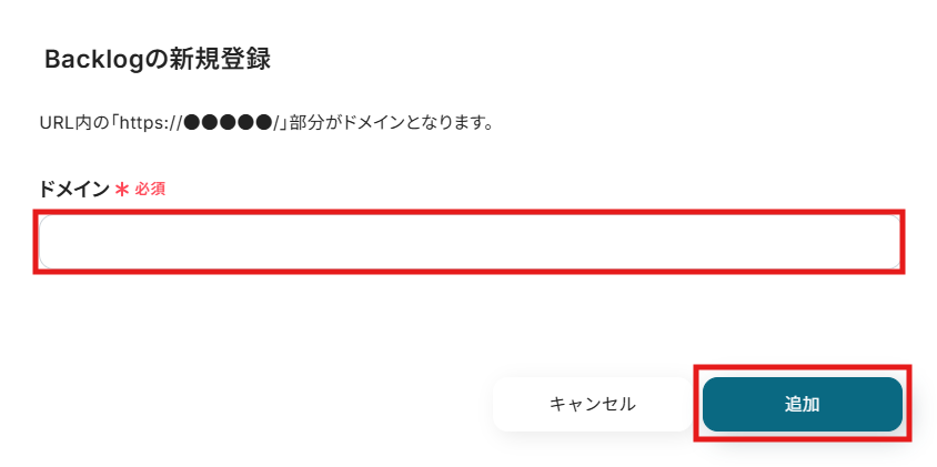 2. Yoomと連携したいBacklogのドメインを入力し、「追加」をクリックします。