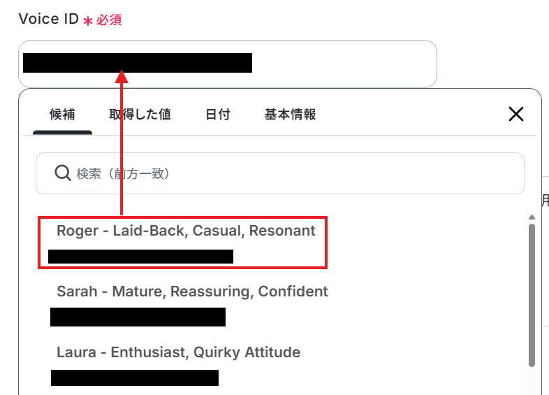 Voice IDはボックスの候補から選択してください。