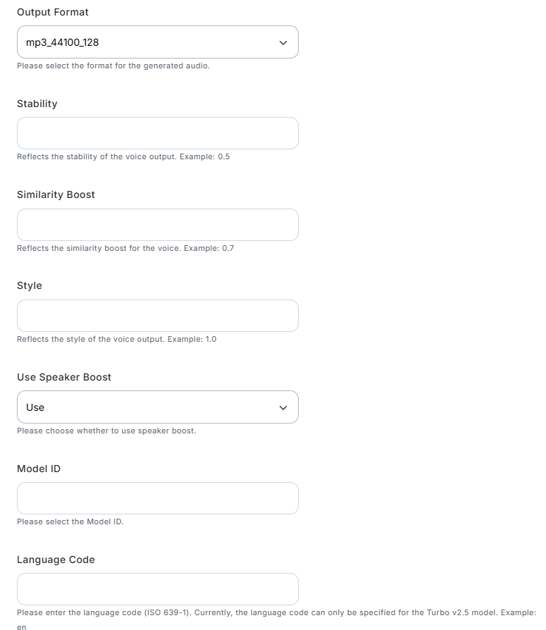 Discordのトリガー設定では、ワークフローを起動させたいサーバーIDやチャンネルIDを任意で設定してください 分岐機能では、前段のDiscordから取得した情報をもとに、特定のキーワードを含むメッセージにのみ反応するなど、ワークフローを起動する条件を自由にカスタマイズできます AI機能によるテキスト抽出では、抽出対象に前段で取得した情報を変数として利用でき、Discordのメッセージ本文から音声化したいテキストの抽出範囲を任意で設定可能です ElevenLabsのアクションでは、固定値または前のステップで取得した情報をもとに設定できます Discordへのファイル送信オペレーションでは、送信先のチャンネルや添付するメッセージの内容などを、固定値や前段の情報を変数として利用し任意で設定してください ■注意事項