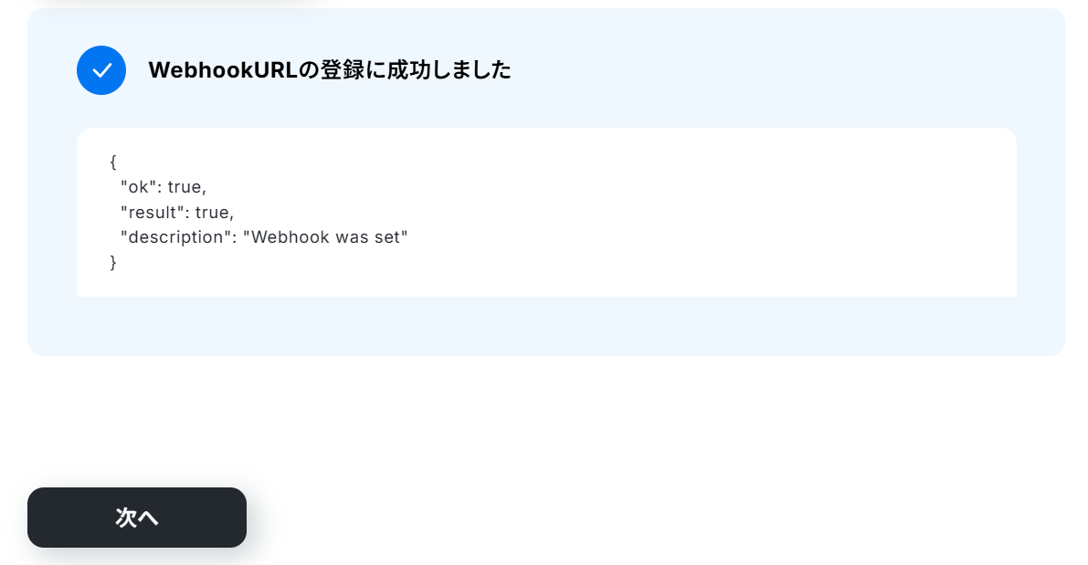 登録が完了したら、次へをクリックしてください。
