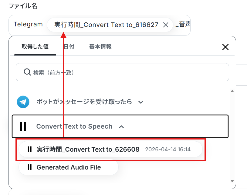 「Telegramで受け取ったテキストを、ElevenLabsで音声化して保存したい!」
