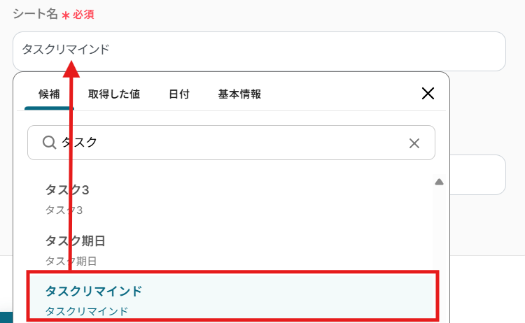 たとえば、「期日」や「担当者名」など、タスクに必要な情報が適切に入力されていれば、連携に問題はありません。