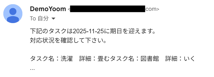 Yoomに登録したメールアドレスに通知が送信されます。