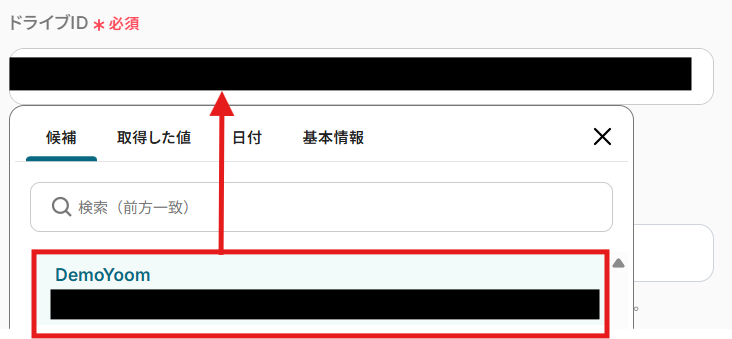 選択するとドライブIDが自動で入力されます。