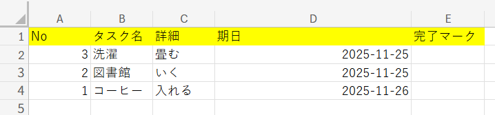 列名などの指定はありませんが、タスク名・詳細・期日などリマインド通知に含めたい情報が適切な列に入力されているよう整えておいてくださいね!