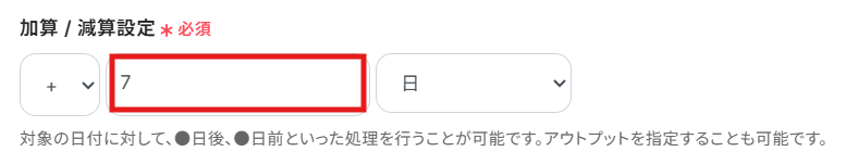 加算/減算設定では、本日を起点に指定した日数前または後の日付を計算できます。