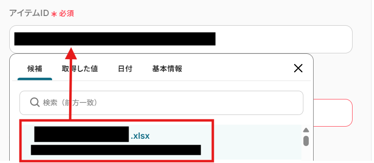 こちらも編集欄をクリックすると、候補が表示されるので、その中から連携したいアイテムを選択してください。
