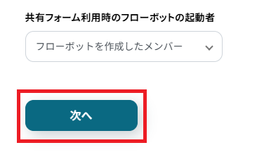 共有フォーム利用時のフローボット起動者も選択してください。今回は「フローボットを作成したメンバー」にしました。