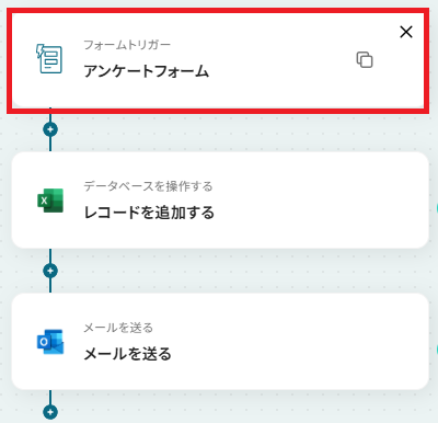 まずはこのフローボットでトリガーになっている、フォームトリガーの「アンケートフォーム」というアクションを設定していきましょう。