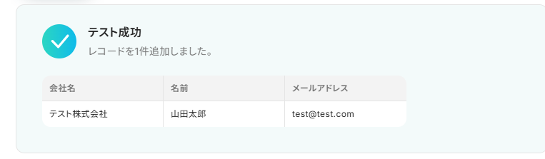 Microsoft Excelのシートも見に行き、レコードが追加されているか確認しましょう。