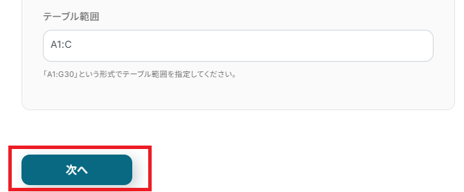 テーブル範囲も指定したら、「次へ」を押してください。