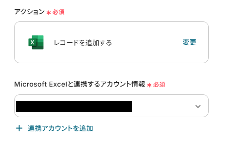 アカウント情報は、Microsoft Excelと連携したいアカウントが選択されているか確認してください。
