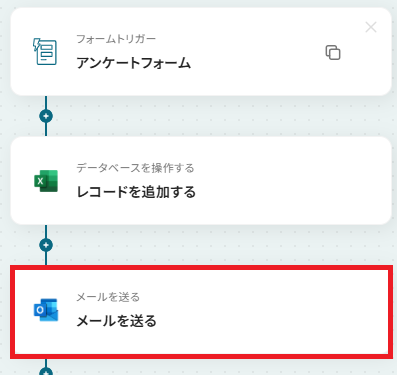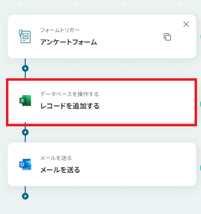 その場合、「レコードを追加する」のあとの「+」からその他のメールアプリを追加・連携し、Outlookのフローは削除してください。