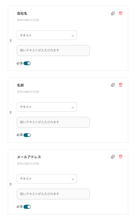 質問の追加は「質問の追加」ボタンから行えます。