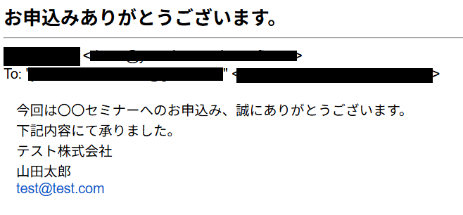 - 本文:今回は〇〇セミナーへのお申込み、誠にありがとうございます。
