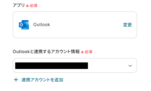 アカウント情報は、Outlookと連携したいアカウントが選択されているか確認してください。