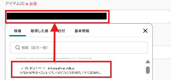 アイテムID、シートIDも候補より入力できます。