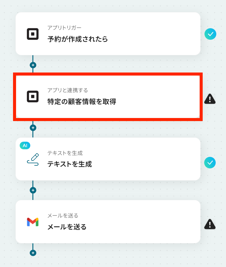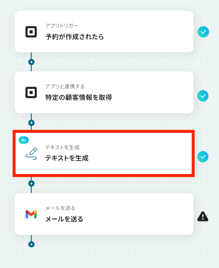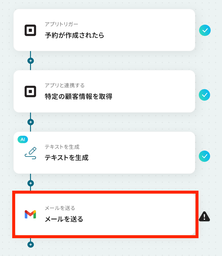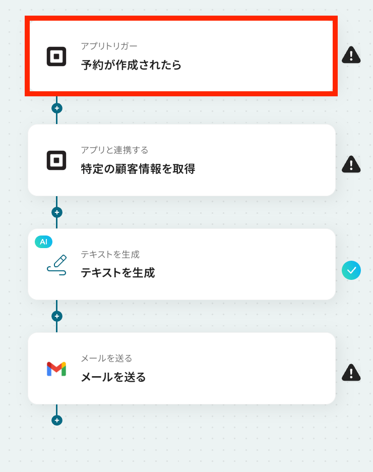それではここから代表的な例として、Squareで新しい予約が作成された際に、AIで最適な文章を生成し、Gmailから自動でメールを送信するフローを解説していきます!