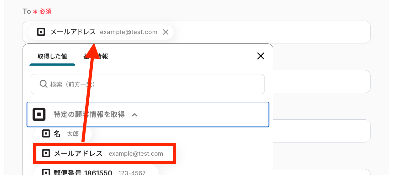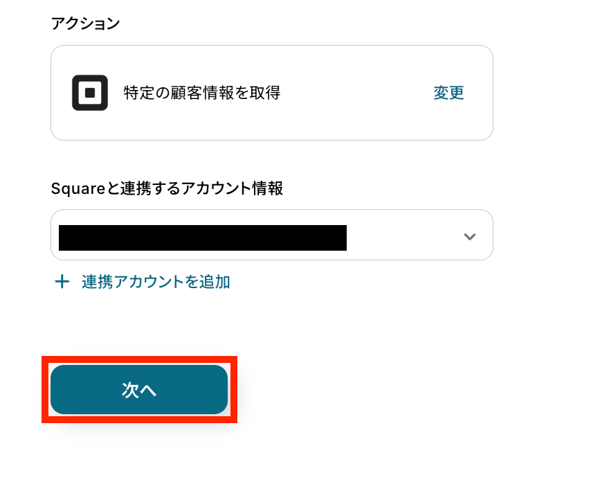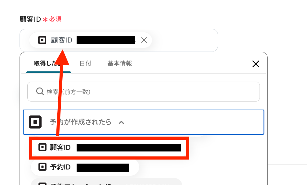 Squareのアイコンをクリックして、顧客IDを取得した値から選択します。