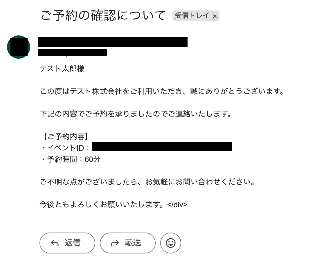 予約を知らせるメールが送信されています!