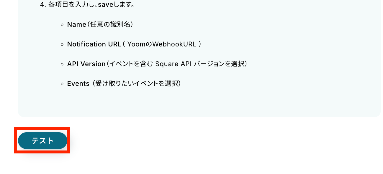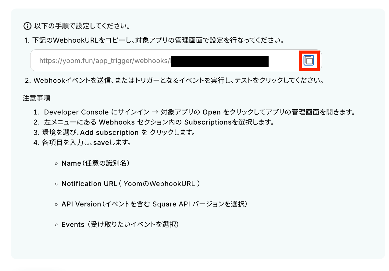 Webhook URLをコピーしてSquare上でWebhookを設定してください