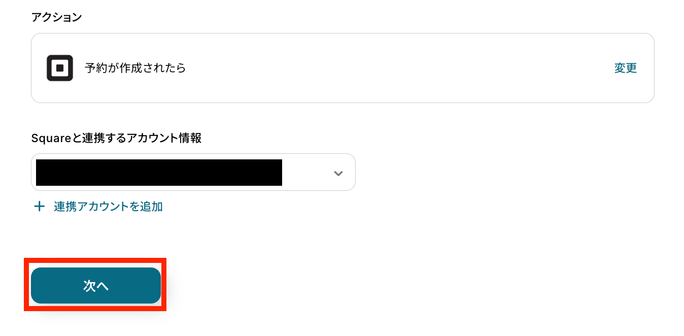 ステップ3:Squareで予約が作成されたら起動するトリガー設定