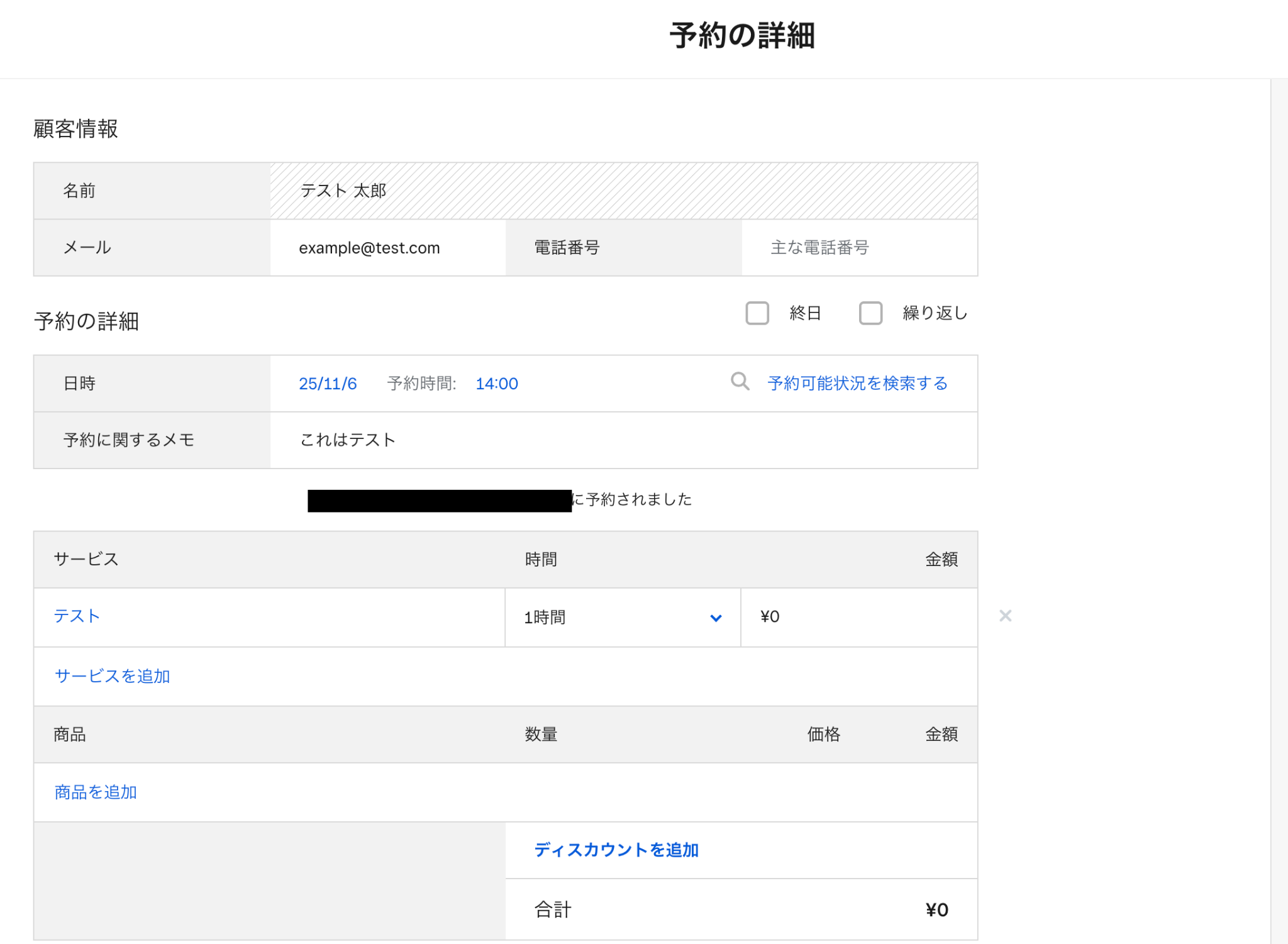 ※今回は、以下の予約をテストとして使用します。