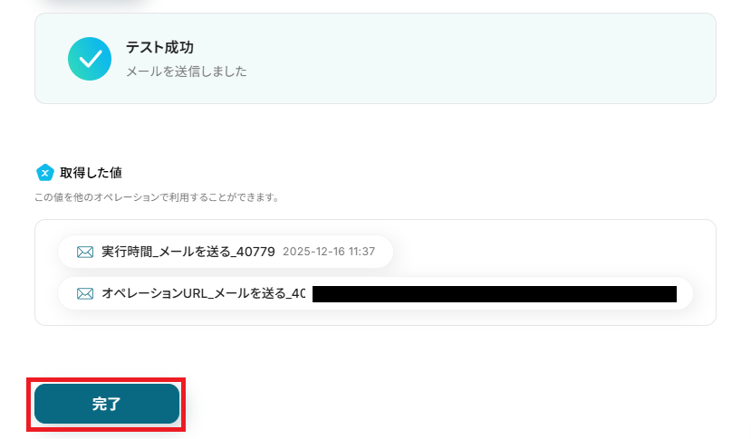 確認できたら、Yoomに戻り「完了」を押してください。