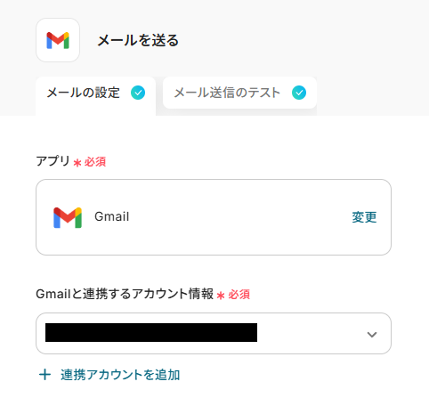 連携するGmailのアカウントに間違いがないかを確認します。