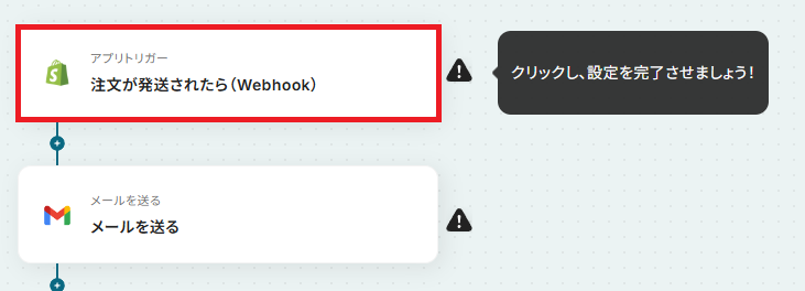 Shopifyのトリガー設定とGmailのアクション設定