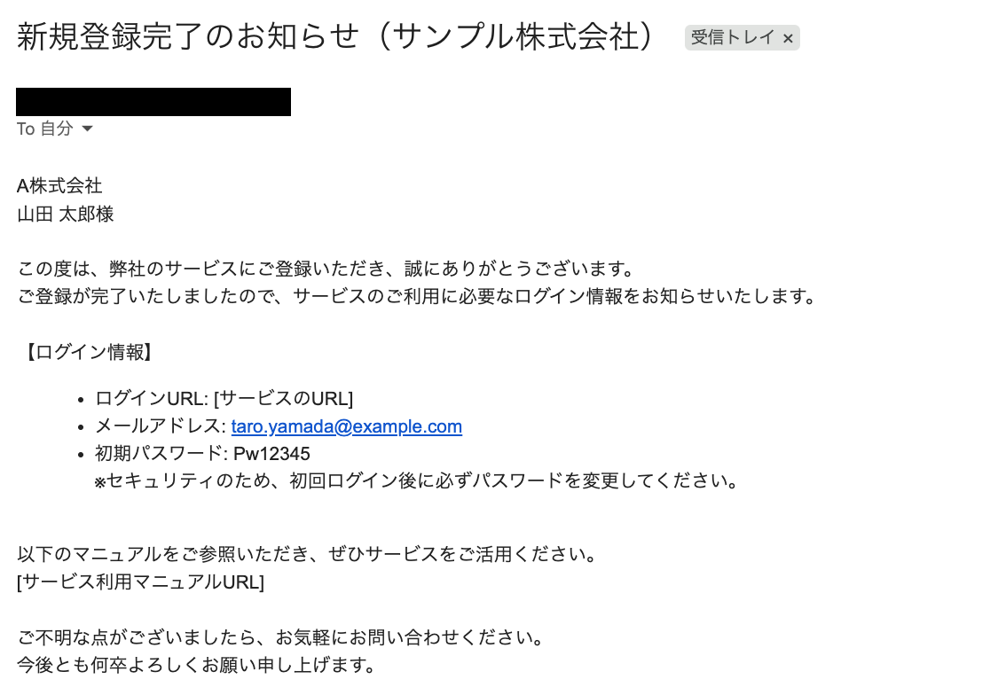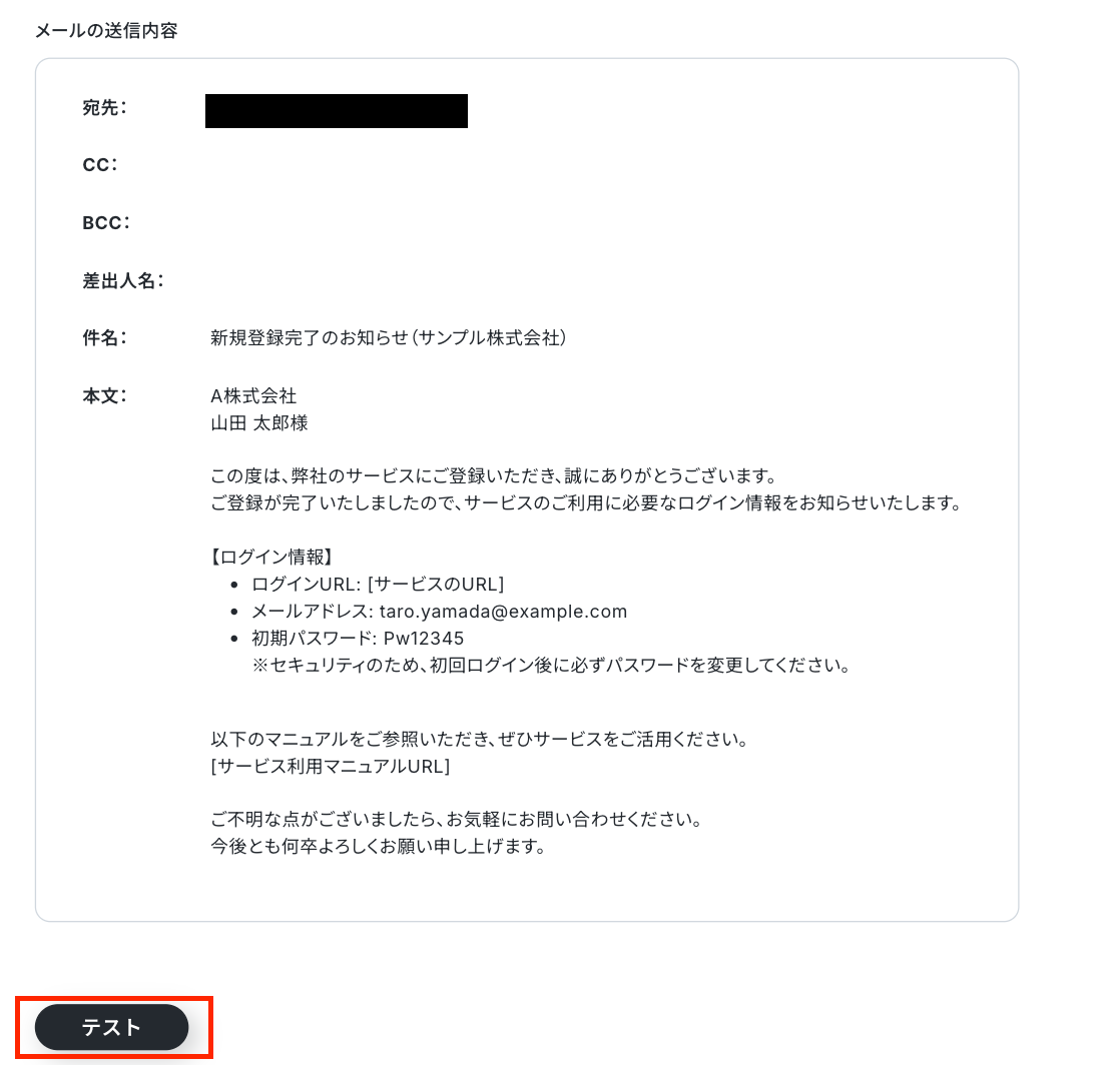 ※以下は、新規顧客へのログイン情報通知を想定して設定していますが、ご自由にカスタマイズしてください。