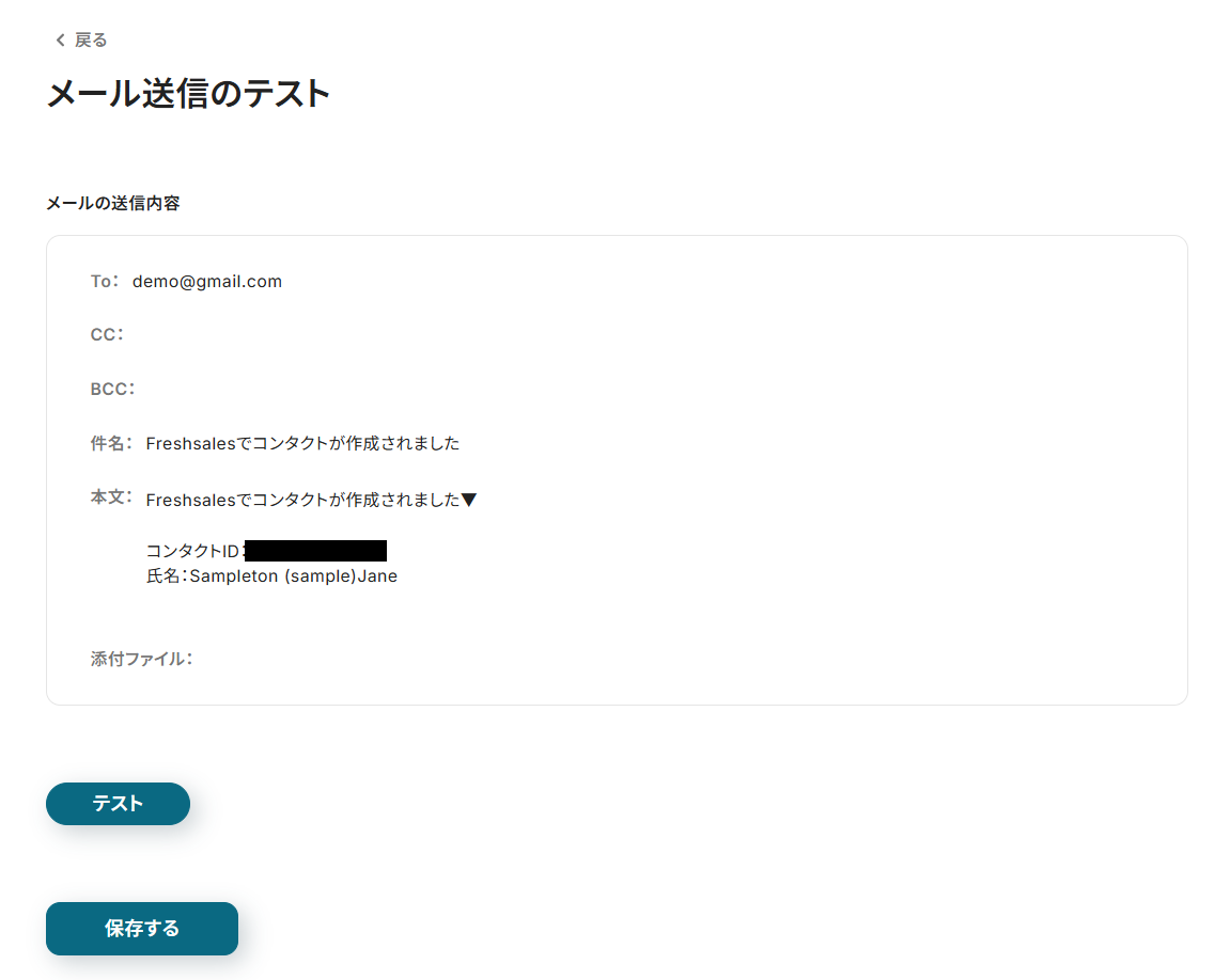 設定が完了したら、Frashsalesでコンタクトを作成してからテストを行います。