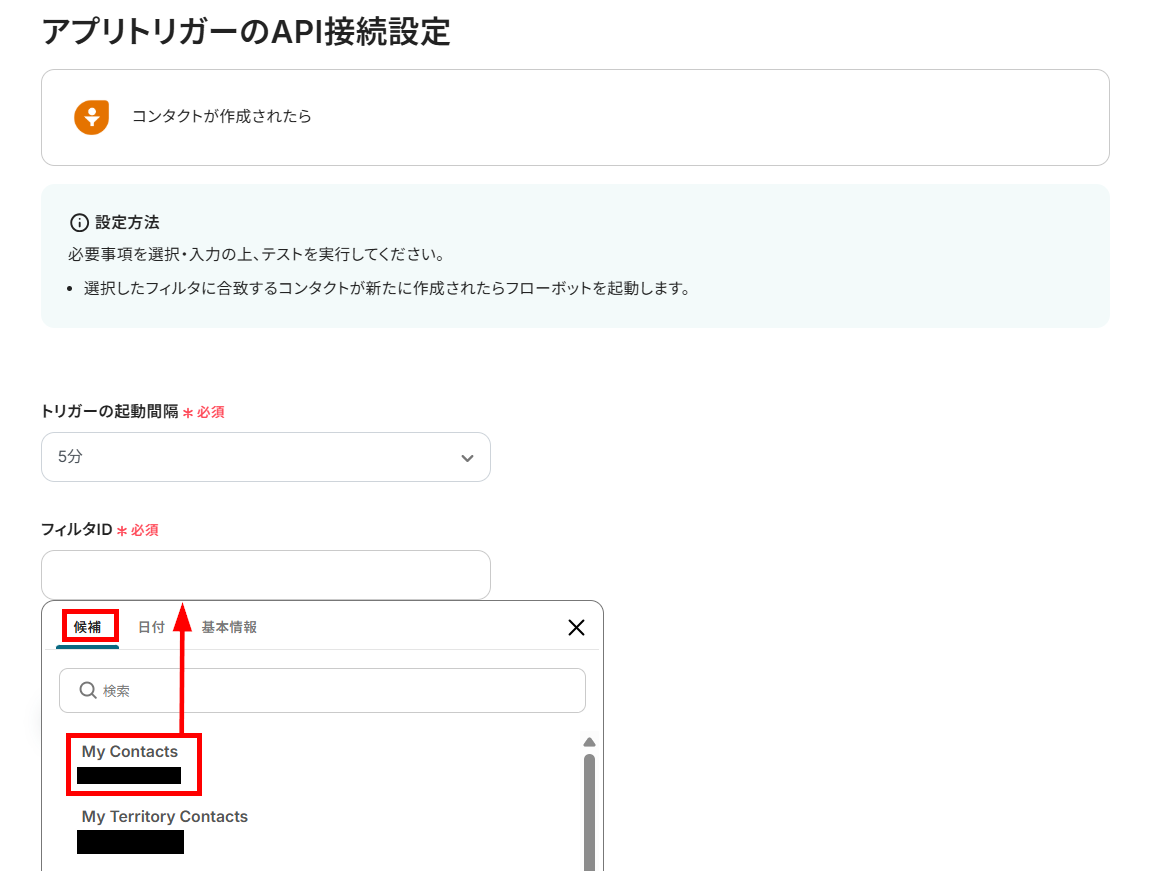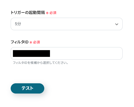トリガーの起動間隔をプルダウンから設定し、フィルタIDを候補から選択しましょう。