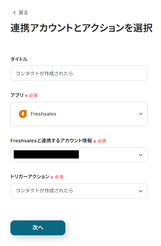 - ここでの設定により、Freshsalesでコンタクトが作成されると、フローボットが起動します。