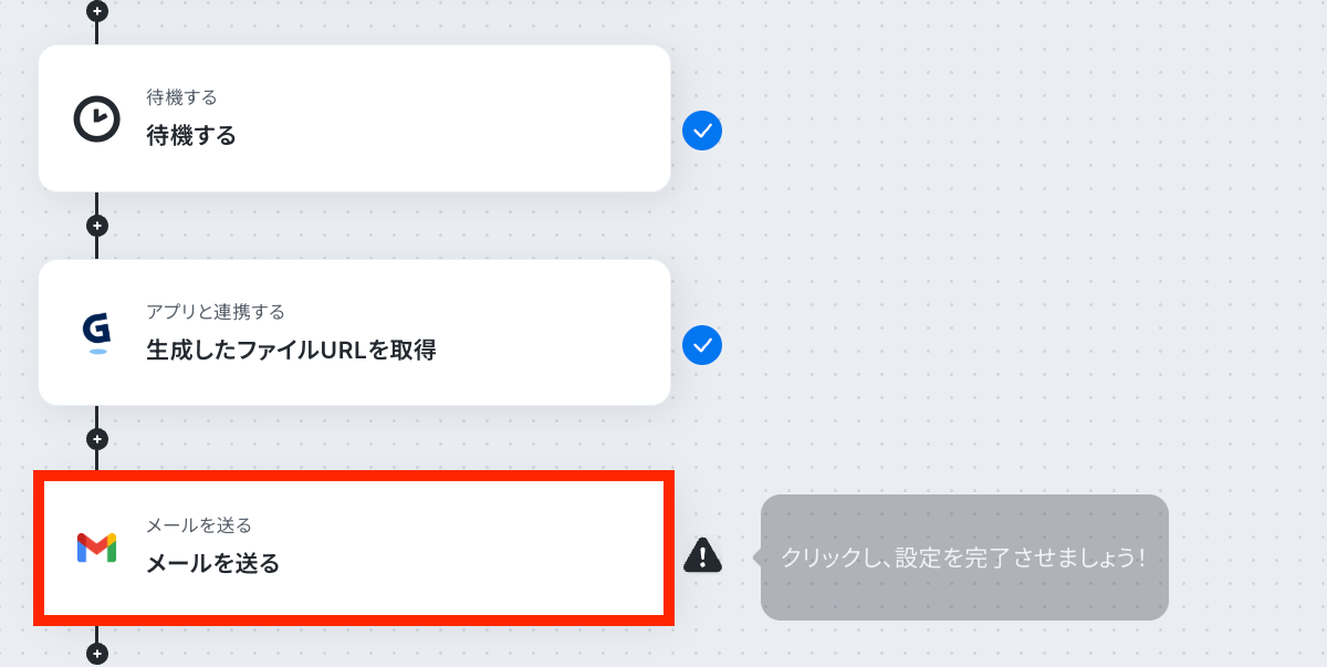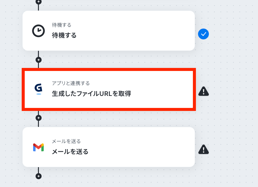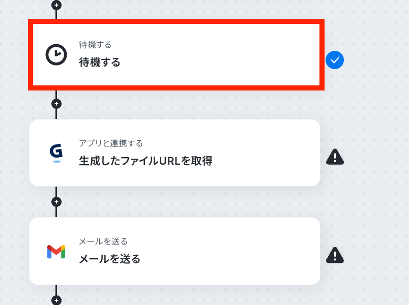 次のステップで生成したファイルURLを取得しますが、集計レポートの生成までに少し時間がかかるため、ここで「待機」という機能を入れます。