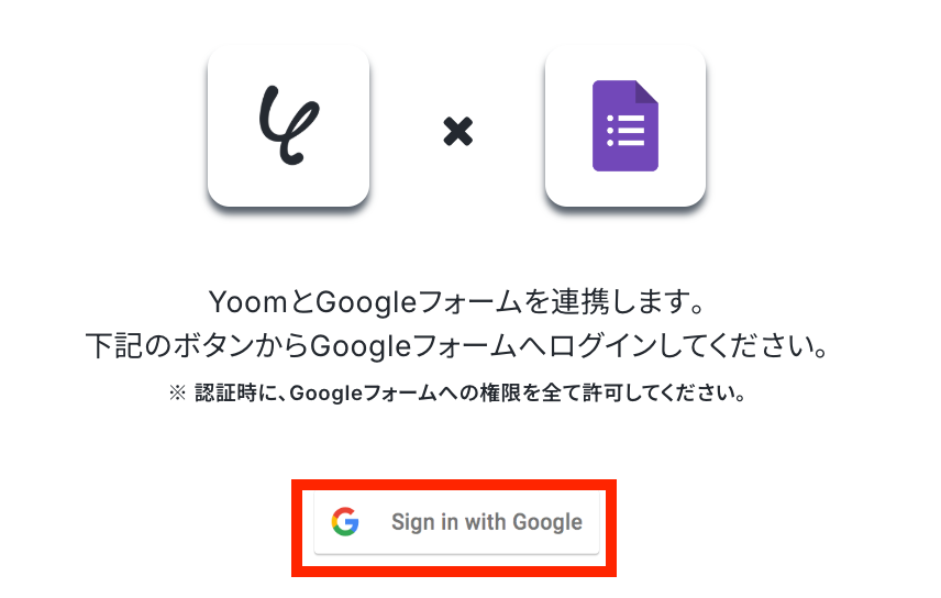 GoogleフォームとYoomの連携方法 Googleフォームのアプリを検索するとログインページが表示されます。 「Sign in with Google」をクリックします。