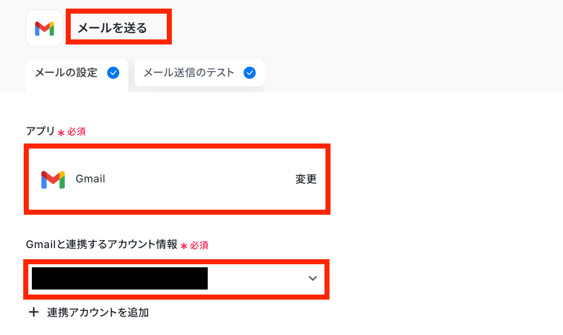 ステップ9:Gmailのアクション設定 該当するアクションを開く