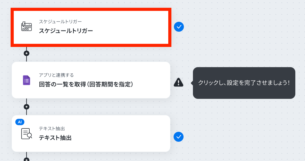 ※詳しい設定方法は📅スケジュールトリガーの設定方法 をご確認ください。