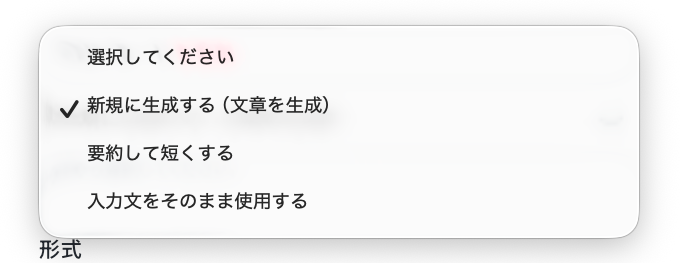 「形式」も選びましょう。