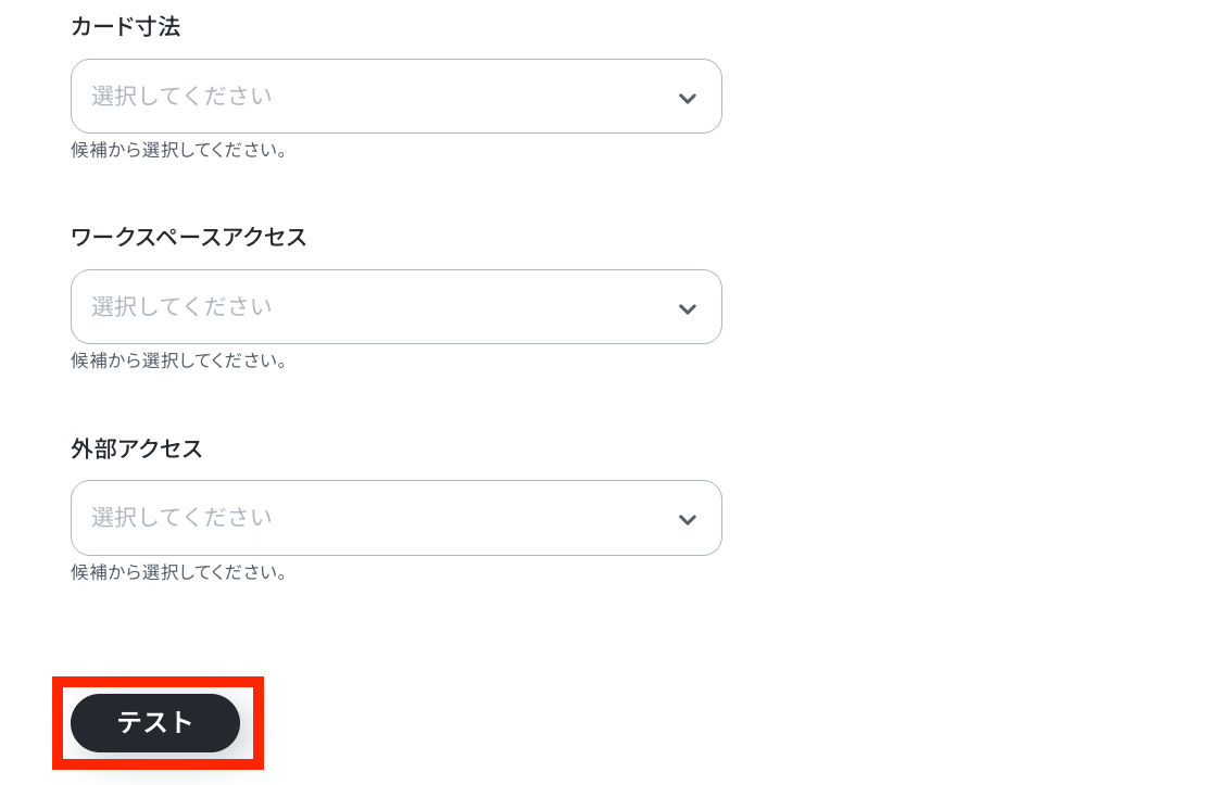 他の項目は任意項目なので必要に応じて設定してください。 設定が完了したら「テスト」をクリックします。