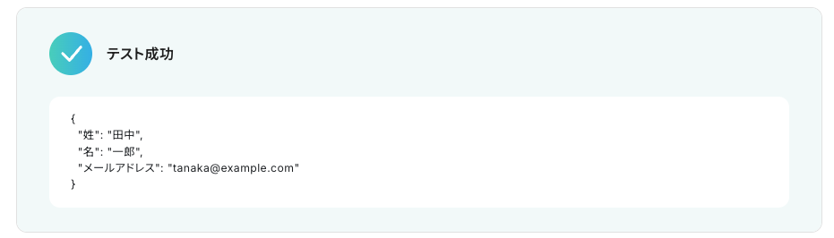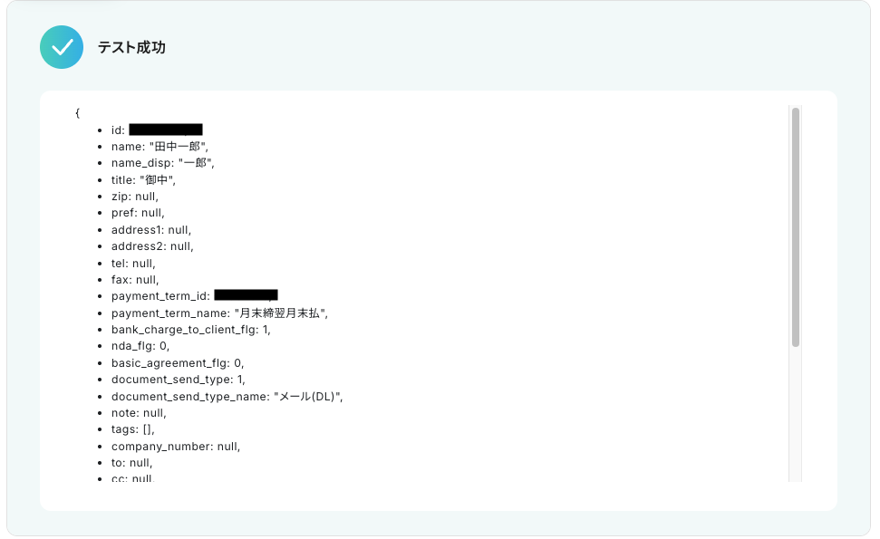 入力が完了したら「テスト」をクリックして、設定した内容でboardに顧客が登録されるか確認しましょう。