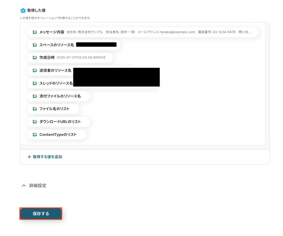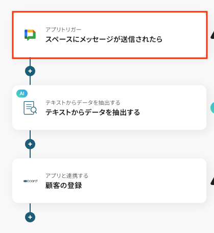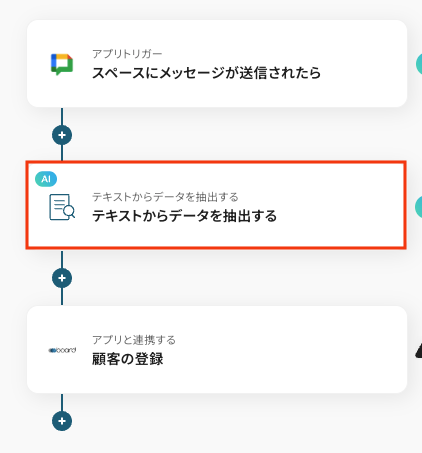 Google Chatからトリガーイベントとして受信したメッセージを対象に、AIで特定のテキストを抽出します。