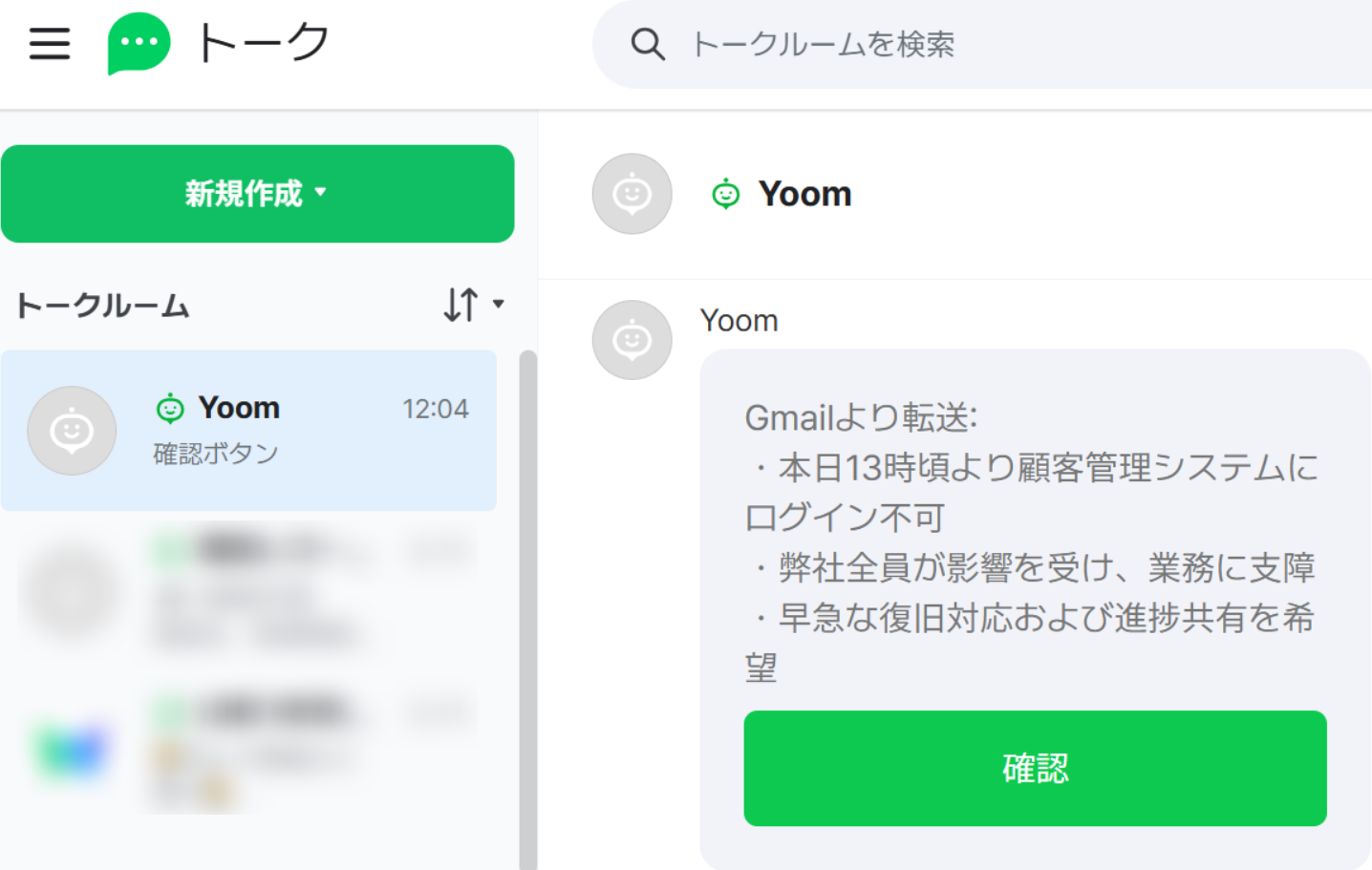 もし特定のキーワードを含むメールを受信した際、承認や確認依頼などのボタン付きメッセージをLINE WORKSのトークルームに自動送信する仕組み があればこれらの手作業から解放されますね。 これにより迅速で抜け漏れのないコミュニケーションを実現し、本来集中すべきコア業務に時間を使うことができるでしょう。