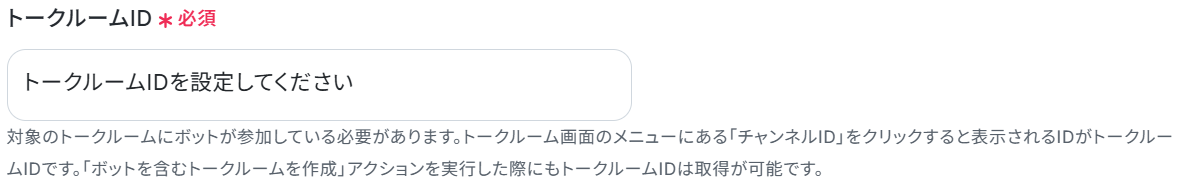 次に、テキストボックス下部の説明通りにトークルームID を入力しましょう。