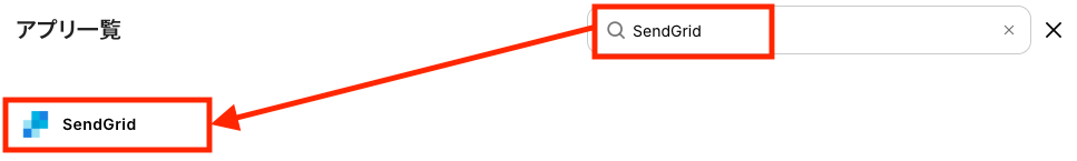 はじめに、検索窓に「SendGrid」と入力し、対象のアプリを選択します。