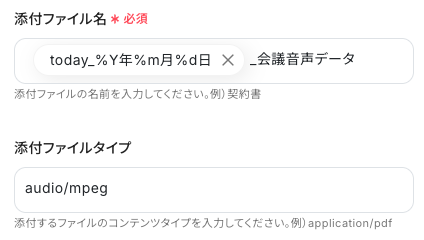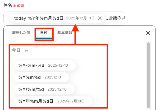 ここでは例として、「{今日の日付}_会議のご共有」と入力しました。
