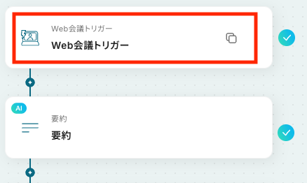 テンプレートを開いたら、最初に表示される「Web会議トリガー」をクリックします。
