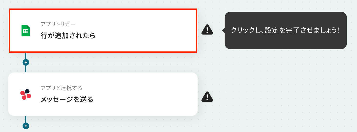 ここでは、Google スプレッドシートで先ほど追加した情報をChatworkにメッセージを通知する設定を行います。