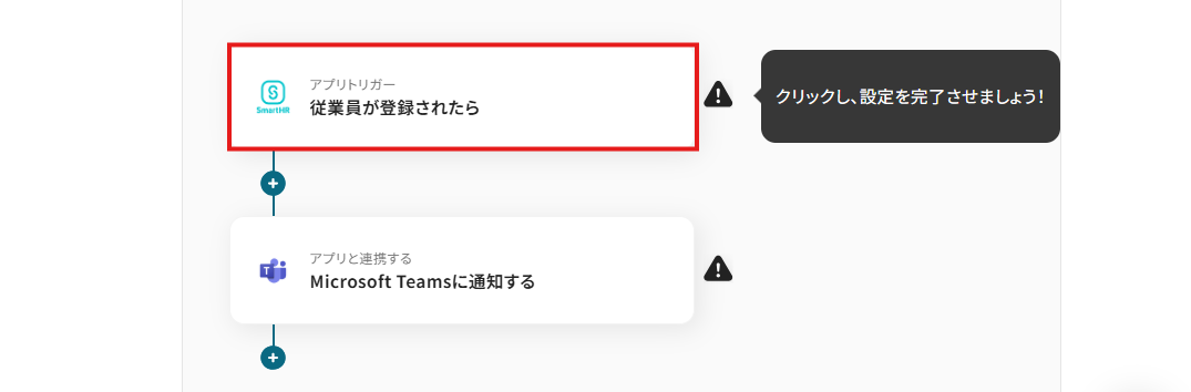 このセクションでは、Yoomを使って「SmartHRに従業員が登録された際に、Microsoft Teamsの指定チャンネルへ自動で通知する」フローを作成する手順をご紹介します。プログラミングの知識は不要で、画面の案内に沿って進めるだけで設定できます。