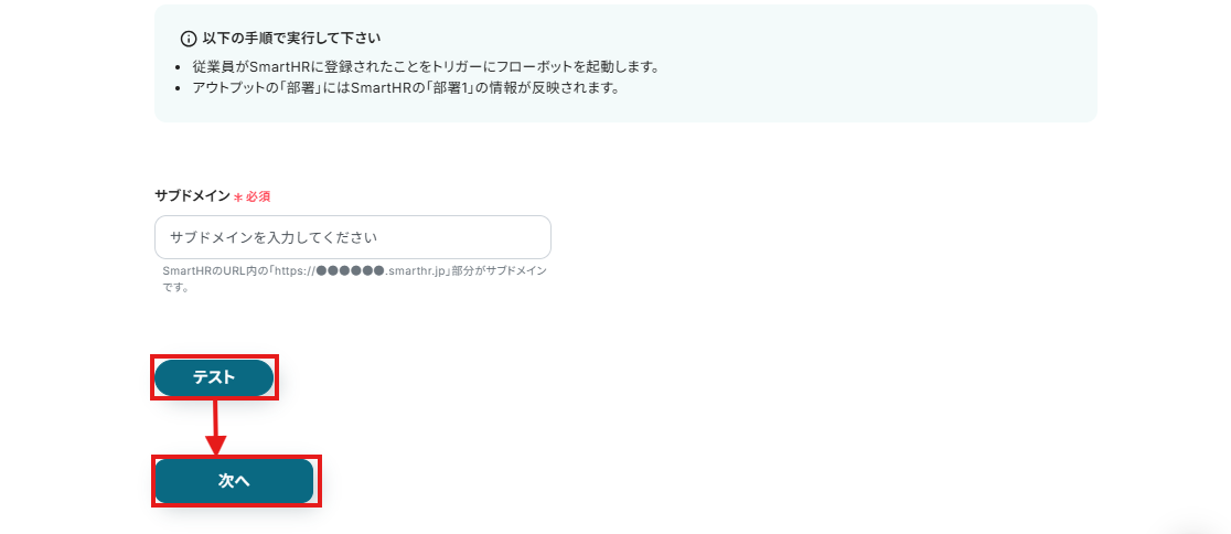 サブドメインは、注釈を参考にSmartHRのURLから手動で入力しましょう。